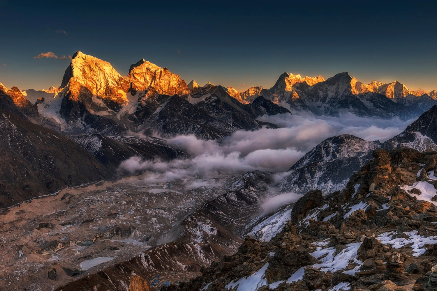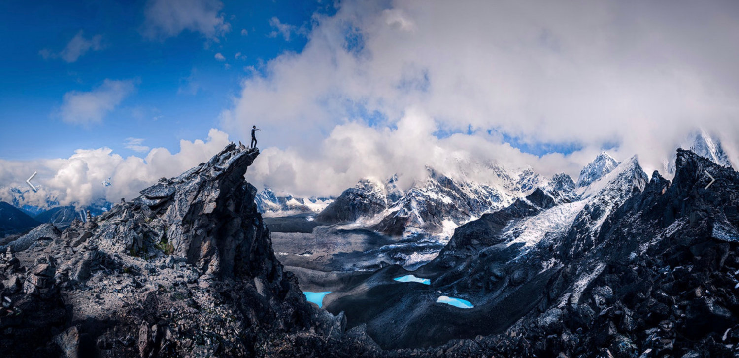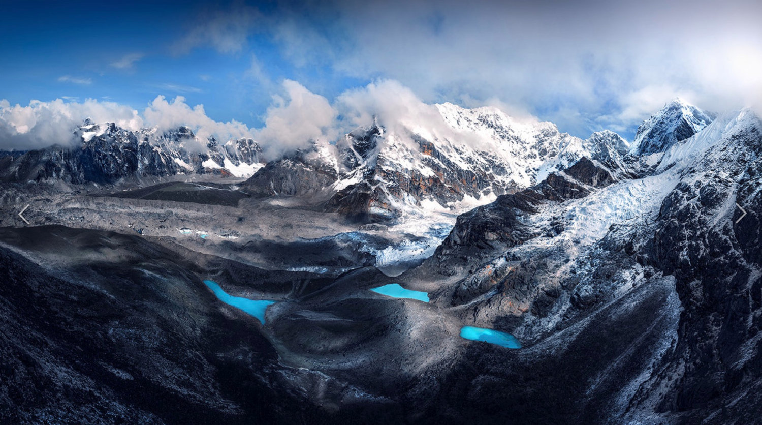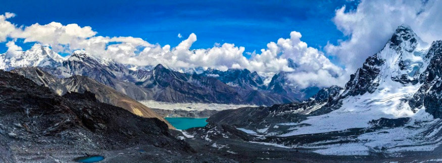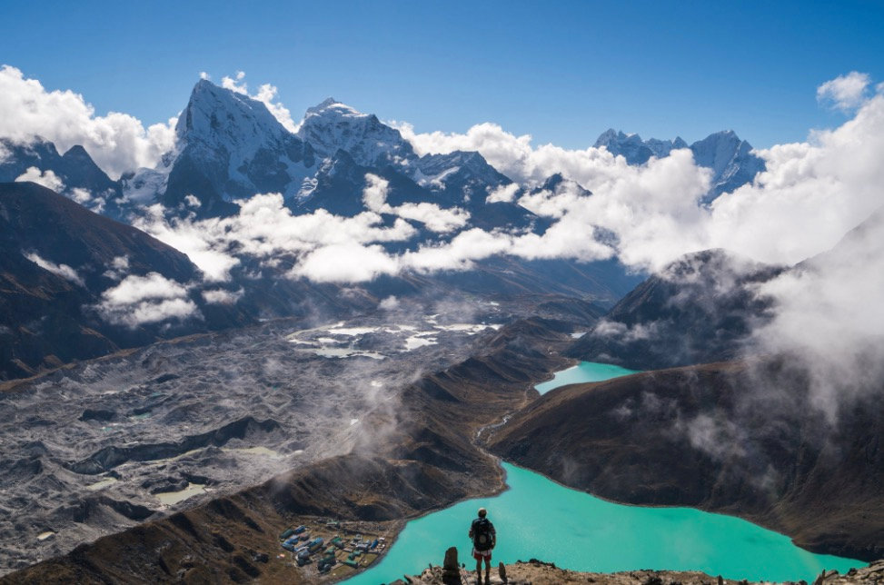 Gokyo-Ri应该算是整个线路中最好的一个观景台了,可以完全看到世界第1,4,5,6高峰(珠峰,洛子峰,马卡鲁,卓奥友),而且这个方向远眺珠峰被挡的最少。再加上这里的第一到第三湖青绿的湖水,Gokyo-Ri绝对是非去不可的观景天堂!