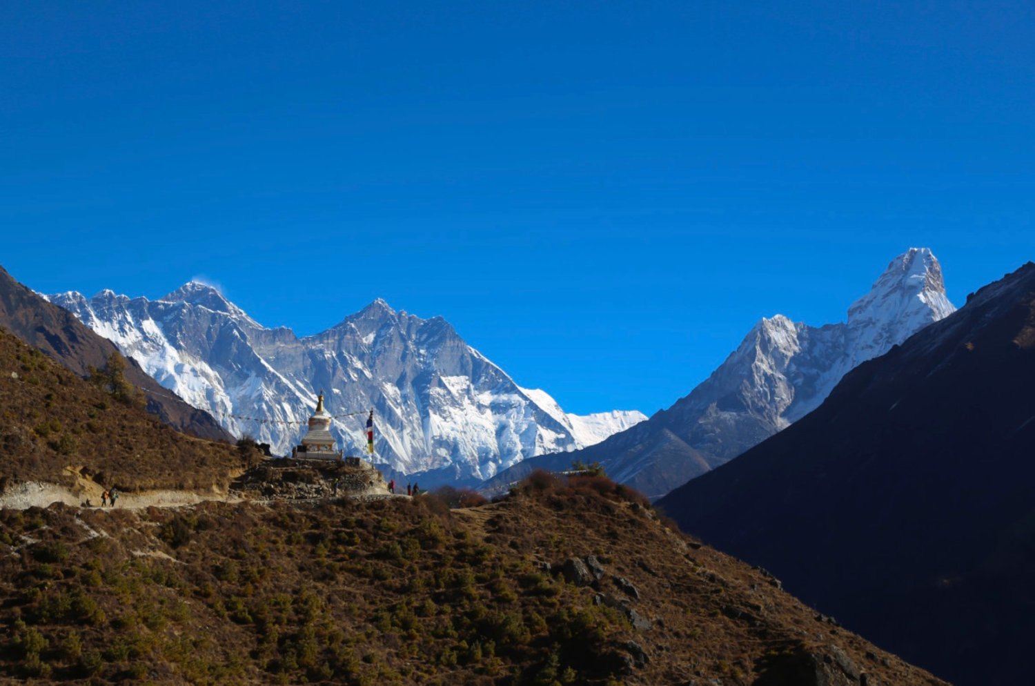 Tengboche本身是EBC登山路上最漂亮的观景台之一!这里不仅能清晰地观赏Ama Dablam雪山,远处的洛子峰也毫无遮挡地展示在眼前,珠峰探出一个小头,像是窥视着这里。